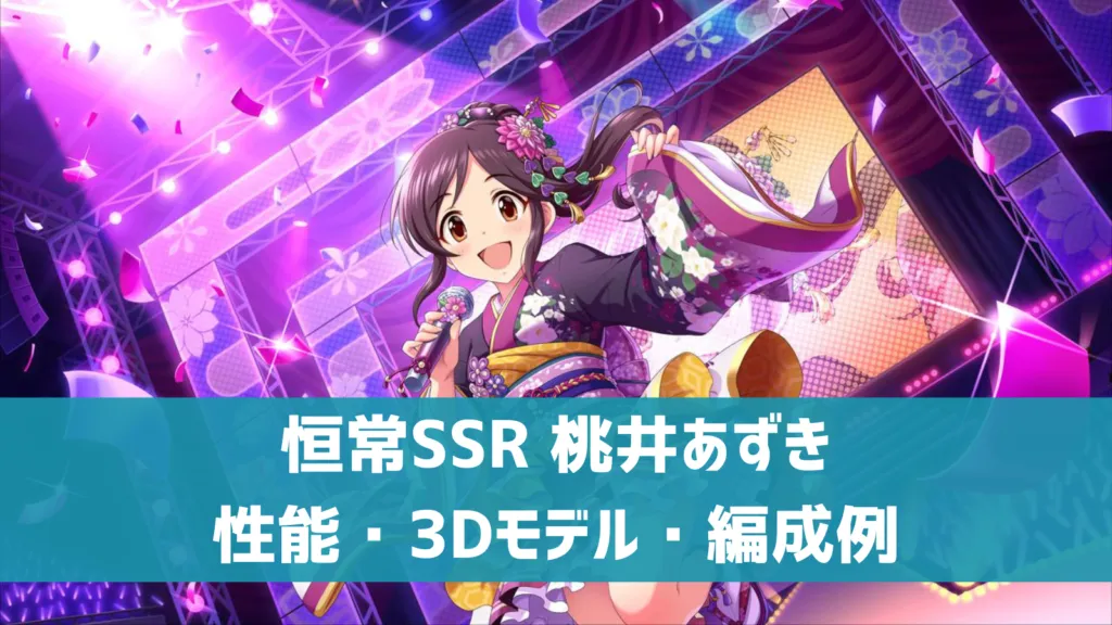 2018年8月17日に追加された、恒常SSR[お祭り小町大作戦]桃井あずきの特技、センター効果、編成例などの性能、3Dモデル・イラストなどのビジュアルを確認していきましょう。