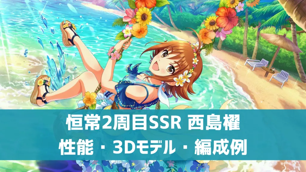2021年7月22日に追加された、2周目恒常SSR[エメラルド・パラダイス]西島櫂の特技、センター効果、編成例などの性能、3Dモデル・イラストなどのビジュアルを確認していきましょう。
