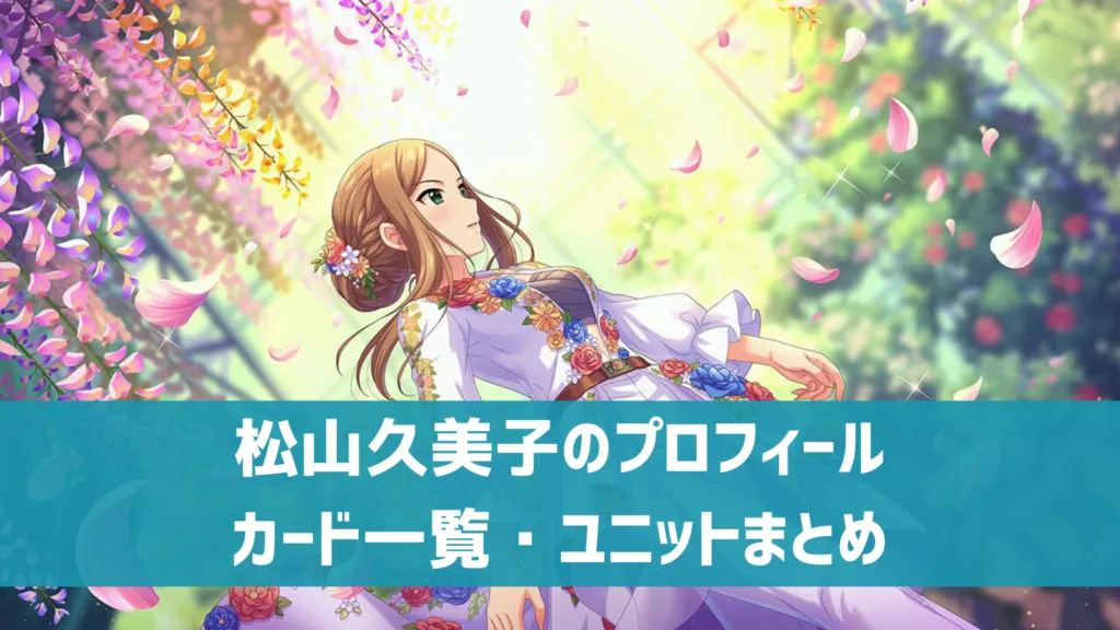 リズムゲーム「アイドルマスター シンデレラガールズ スターライトステージ」に登場するアイドル、松山久美子ちゃんのプロフィール、カード(エピソード)をまとめました。