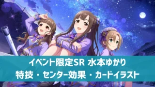 2024年2月のイベントで登場したSR水本ゆかりのステータス、カードイラストをまとめました。特技は9秒高確率フリックアクト。