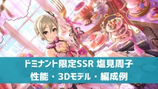 2024年3月のドミナントガシャで登場したSSR塩見周子の特技などの性能、3Dモデルをまとめました。特技は6秒高確率ドミナント・ハーモニー