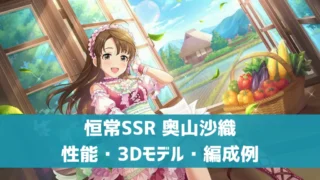 アイドル【デレステ】恒常SSR[純朴の若草]奥山沙織 特技・センター効果・3Dモデル・セリフまとめ 恒常SSR奥山沙織の特技などの性能、3DモデルやMVなどをまとめました。特技は9秒高確率コーディネイト。 2025.08.31アイドルスキル・特技デレステ