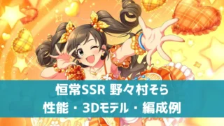 アイドル【デレステ】恒常SSR[ごーごー!すまいらー!!]野々村そら 特技・センター効果・3Dモデル・セリフまとめ 恒常SSR野々村そらの特技などの性能、3DモデルやMVなどをまとめました。特技は7秒高確率コーディネイト。 2025.10.26アイドルスキル・特技デレステ