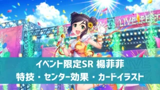 アイドル【デレステ】イベント限定SR[ハートフェルトパーティー]楊菲菲 特技・センター効果・セリフまとめ 2018年9月のイベントで登場したSR楊菲菲のステータス、カードイラストをまとめました。特技は8秒中確率ダメージガード。 2025.09.23アイドルスキル・特技デレステ
