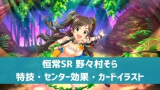 アイドル【デレステ】恒常SR[わいるどしゃうと]野々村そら 特技・センター効果・セリフまとめ 2018年11月に登場したSR野々村そらのステータス、カードイラストをまとめました。特技は7秒高確率ダメージガード。 2025.10.25アイドルスキル・特技デレステ
