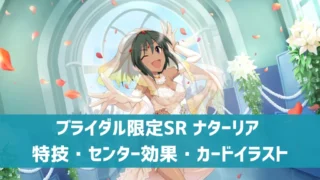 アイドル【デレステ】限定SR[ハッピーブライダル]ナターリア 特技・センター効果・セリフまとめ 2016年5月の限定ガシャで登場したSRナターリアのステータス、カードイラストをまとめました。特技は9秒中確率ダメージガード。 2025.11.03アイドルスキル・特技デレステ