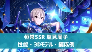 恒常SSR塩見周子の特技などの性能、3DモデルやMVなどをまとめました。特技は9秒高確率コーディネイト。
