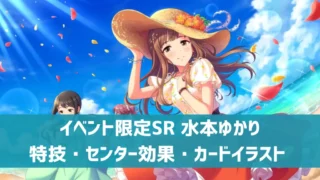 アイドル【デレステ】イベント限定SR[Kawaii make MY day!]水本ゆかり 特技・センター効果・セリフまとめ 2017年7月のイベントで登場したSR水本ゆかりのステータス、カードイラストをまとめました。特技は7秒中確率SCOREボーナス。 2025.11.02アイドルスキル・特技デレステ